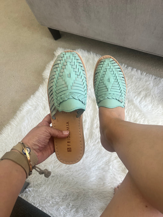 Women's Leather Huarache Sandals - Mint Ankle Strap