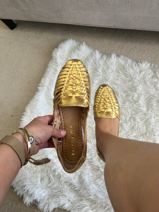 Women's Leather Huarache Sandals - Golden