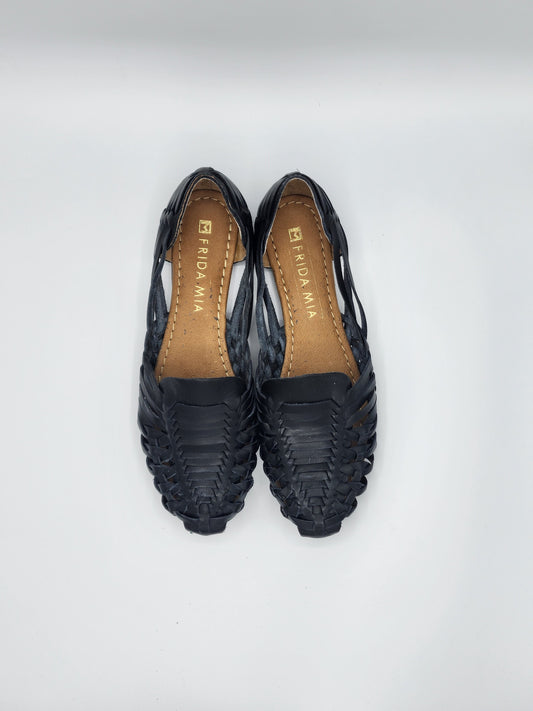 Women's Leather Huarache Sandals - Black Slip On