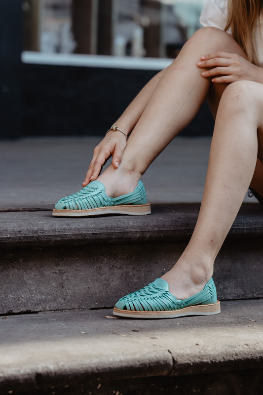 Women's Leather Huarache Sandals - Mint